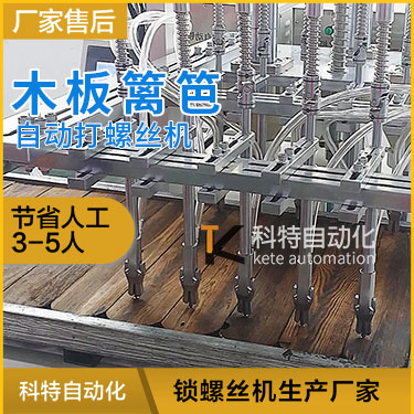 自攻螺釘 木板自動打螺絲機視頻展示:本案例根據客戶產品尺寸定制設備,需要鎖附實木籬笆上的2排螺絲,采用多頭同時鎖附設計,定制型螺絲自動供應器,螺絲自動排列吹送10顆螺絲到批嘴內,人工只需將產品放置到指定夾具位置,設置即可自動完成打螺絲動作,大幅提高效率,省時省力,省人工。